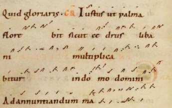 Inicio del gradual Iustus ut palma (Msc.Lit.7 Staatsbibliothek Bamberg)