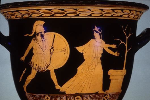 Pero MENELAO vino a por ella. Cree que la perdonó. Al menos no tuvo estómago para clavarle su espada: se le cayó de las manos. De nuevo su belleza hizo que los que la miraban no vieran nada más a su alrededor.